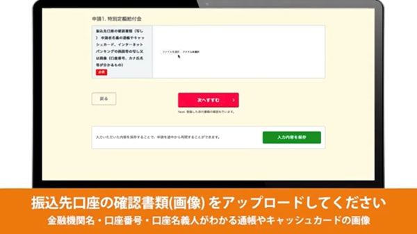 市區町村會給每一戶的戶主發送申請書,以家庭為單位進行申請。除了在發放的申請書上計入家庭成員信息,一共申領的錢數及匯款銀行賬戶信息外,還需要提交身份證明的復印件及銀行賬戶復印件。身份證明書指的是公共機構發行的,證明一個人是其本人、或在法律上取得一定資格的證件,一般包括在留卡、保險證、駕照等記載姓名、性別、照片、出生年月及住所的證件。