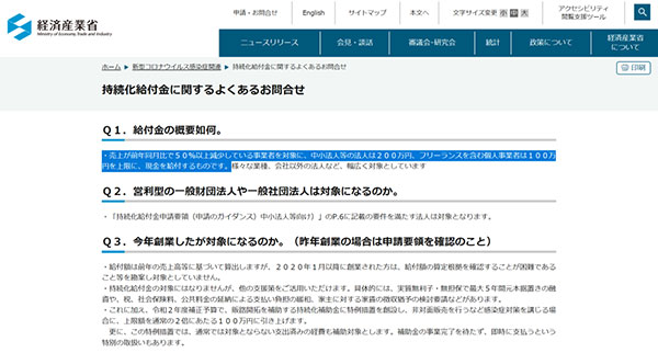 關于「持続化給付金」的申請相關問題咨詢,有意向申請的朋友請在日本經濟產業省官網查詢。