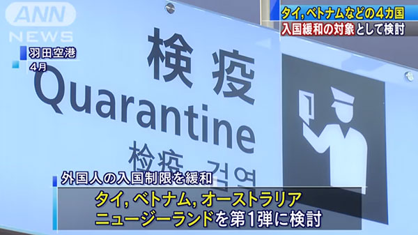 根據日本媒體此前的報道,日本政府討論的第一批可入境日本的四個國家為:泰國、越南、澳大利亞、新西蘭。對象為出于商業目的入境日本的商務人士。