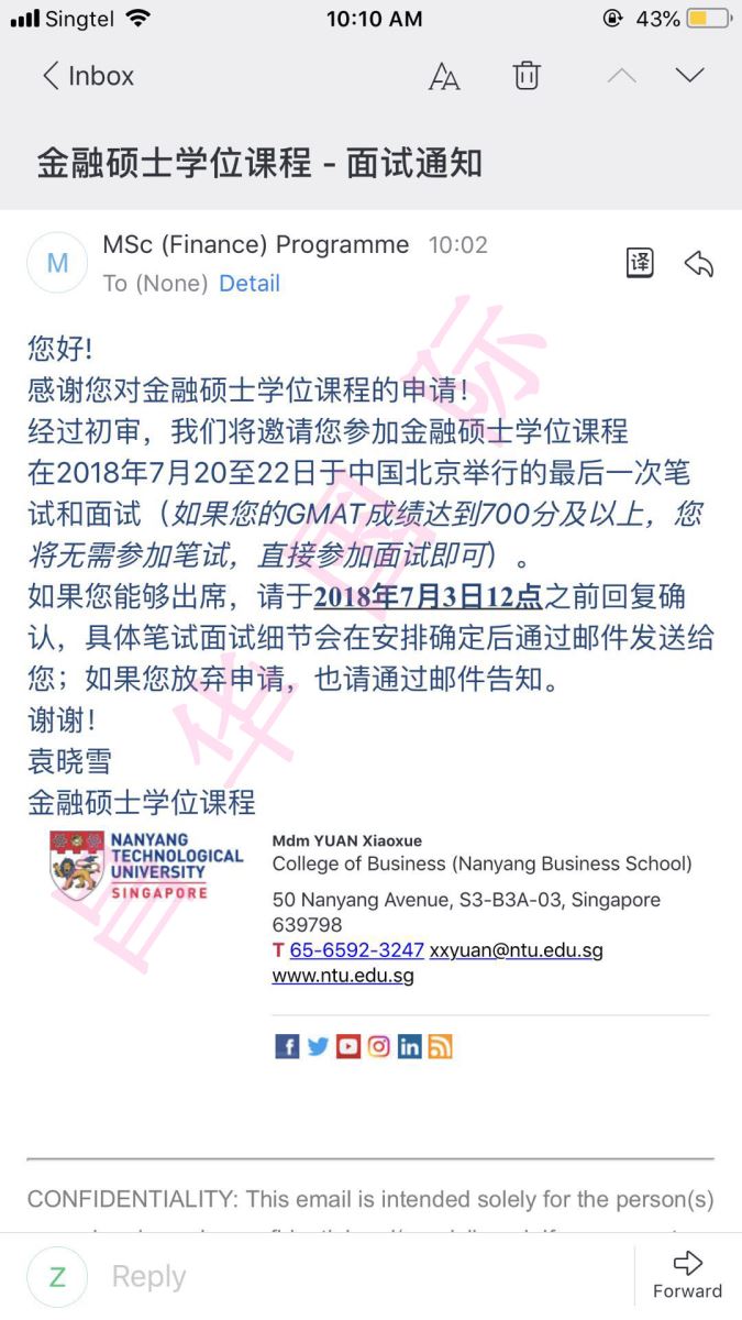 畢業于中國海洋大學的Z同學,GPA:3.71,在青島某機構申請新加坡南洋理工大學碩士,臨近開學缺遲遲未通過。經朋友介紹來到了昌華國際,我們的老師綜合分析學生的實際情況,在時間緊任務重的情況下立即開展資料的制作與背景提升。成功申請到新加坡南洋理工大學的兩個碩士項目。